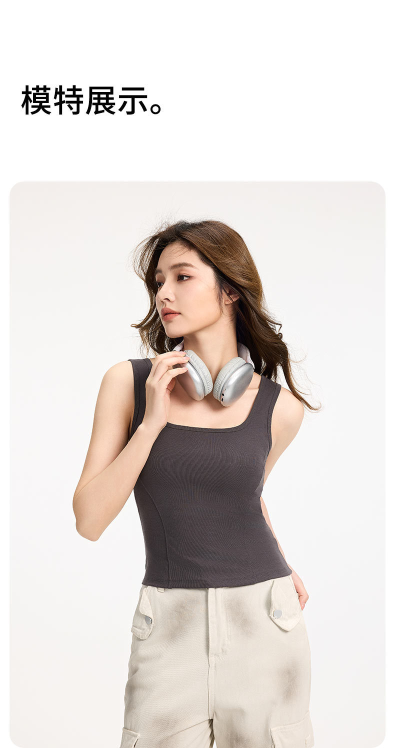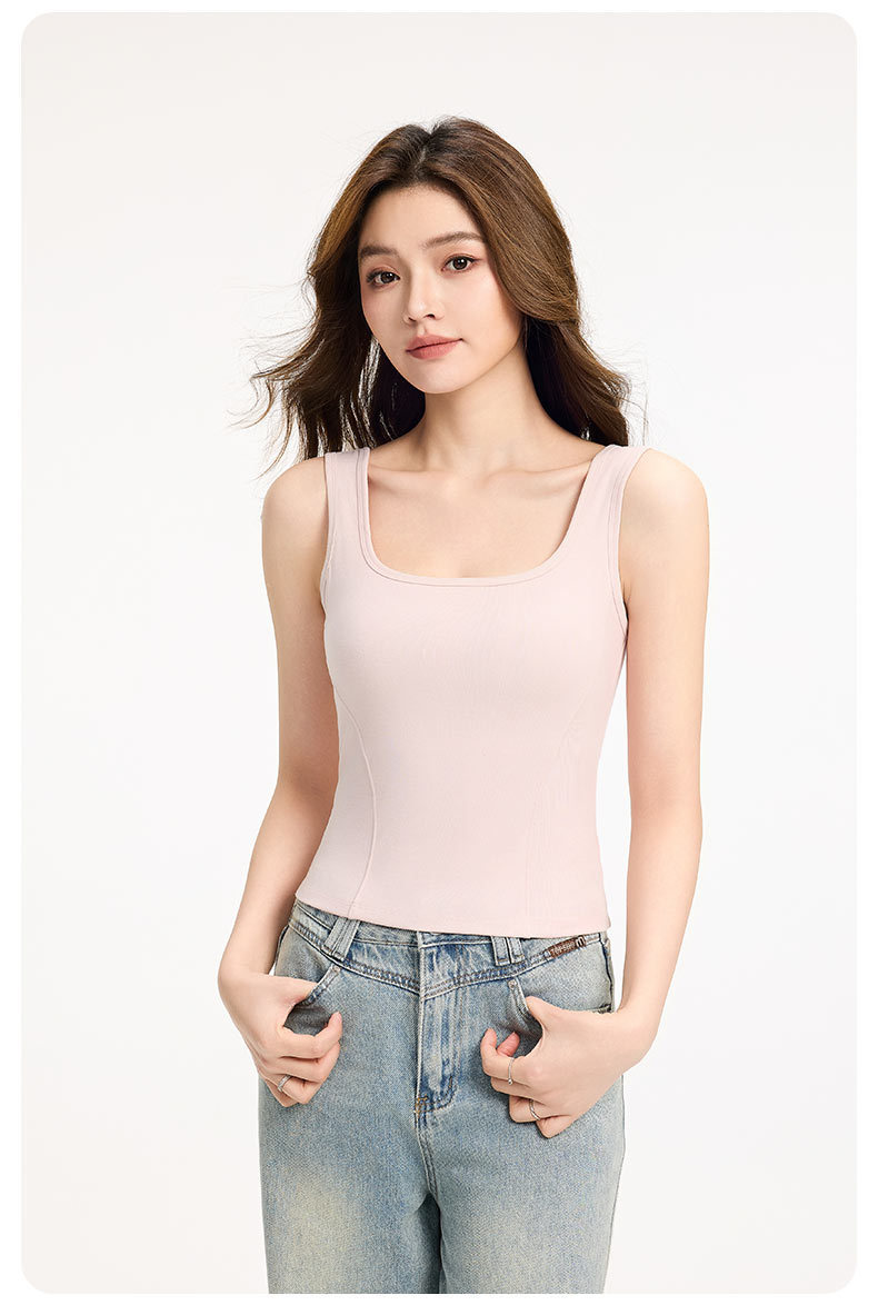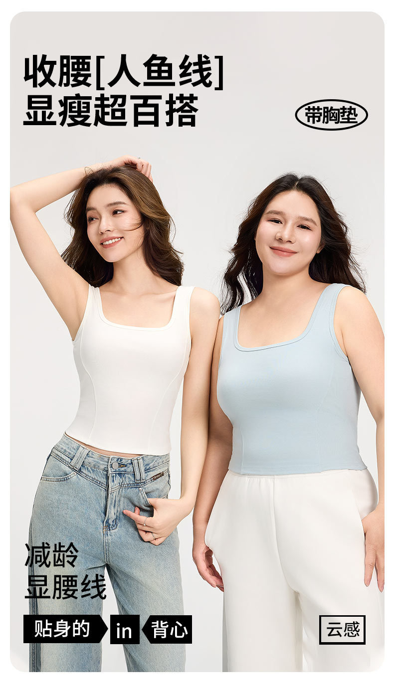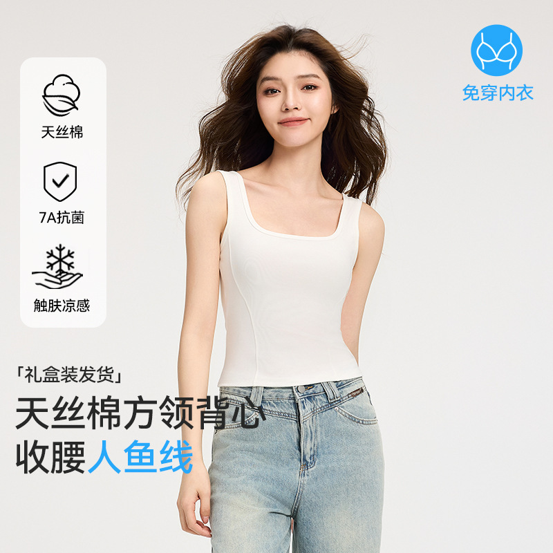 带胸垫背心女内搭冬季打底2026新款莱赛尔棉方领文胸一体吊带上衣