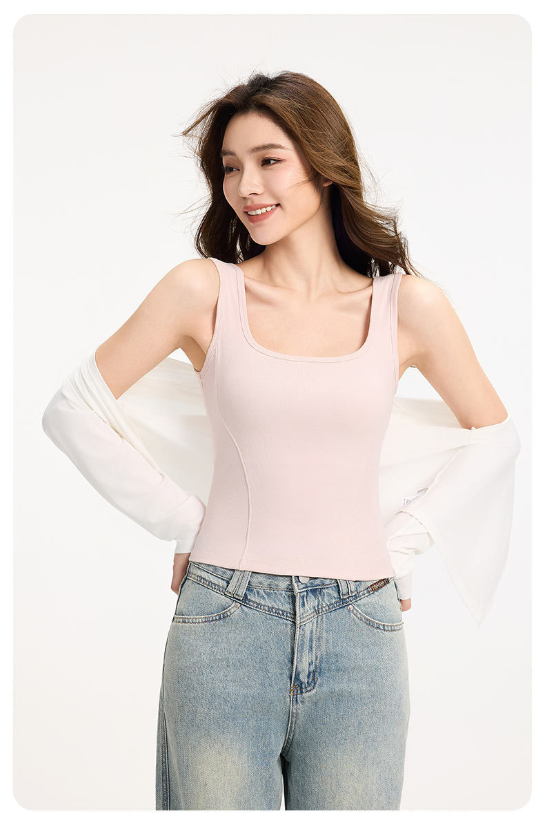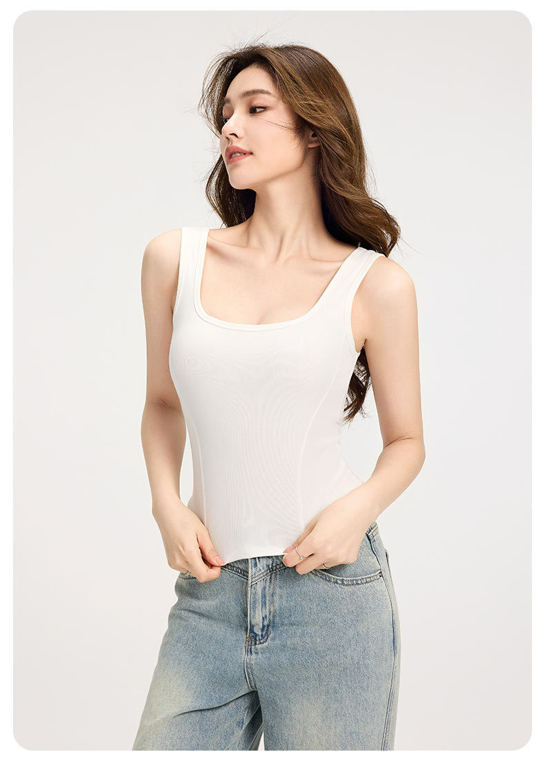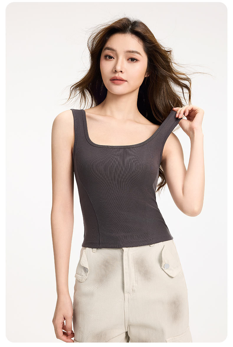 带胸垫背心女内搭冬季打底2026新款莱赛尔棉方领文胸一体吊带上衣
